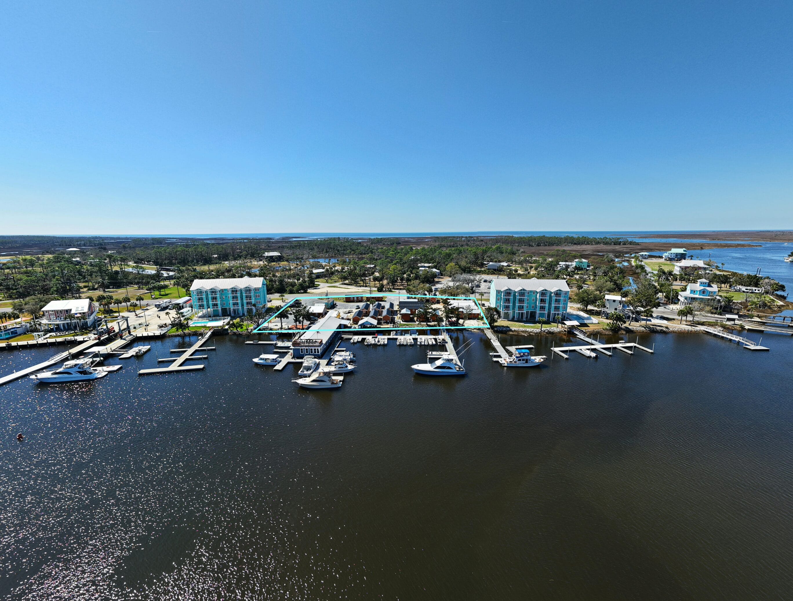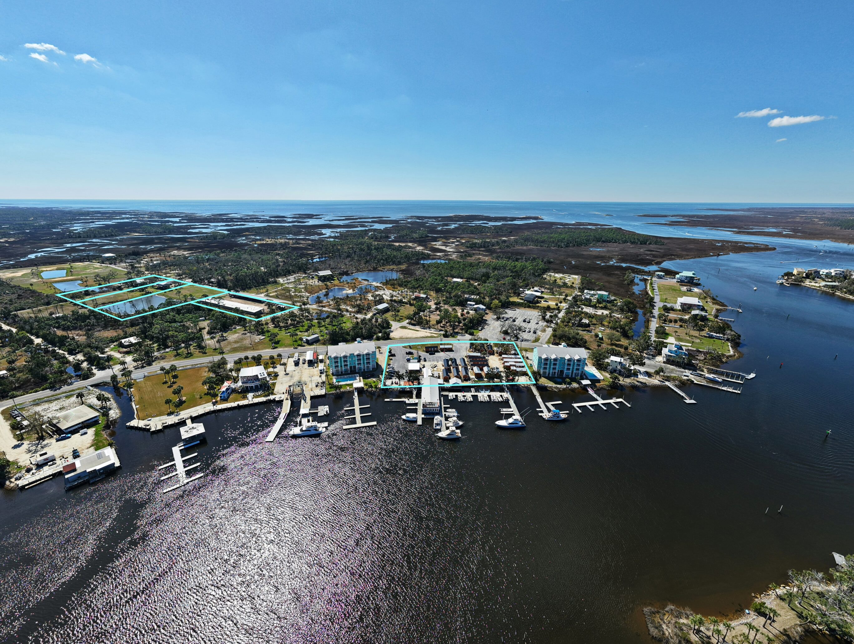 The offering consists of five parcels totaling approximately 9± acres, including a 1.8± acre waterfront marina and four upland parcels. The property benefits from multiple complementary revenue streams including marina slips, cabin rentals, restaurant and bar operations, boat storage, residential rentals, and significant future development potential.