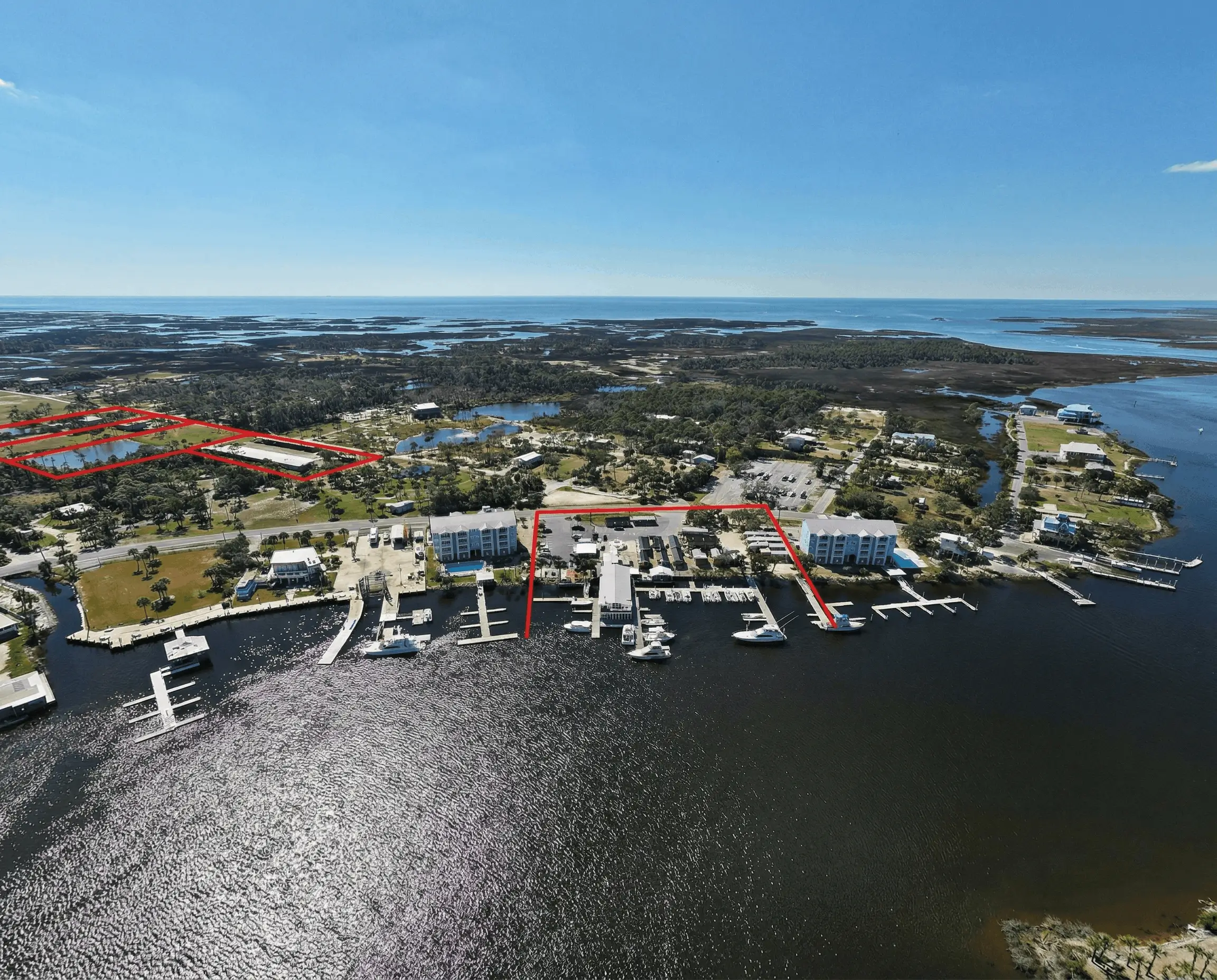 The offering consists of five parcels totaling approximately 9± acres, including a 1.8± acre waterfront marina and four upland parcels.